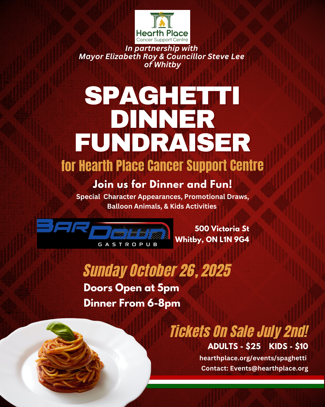 Spaghetti Dinner Fundraiser for Hearth Place Cancer Support Centre